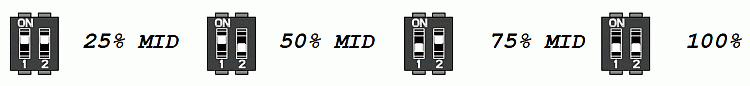 Рис.2. Комбинации положения встроенного микропереключателя регулировки средних частот выхода ”LINE OUT”.